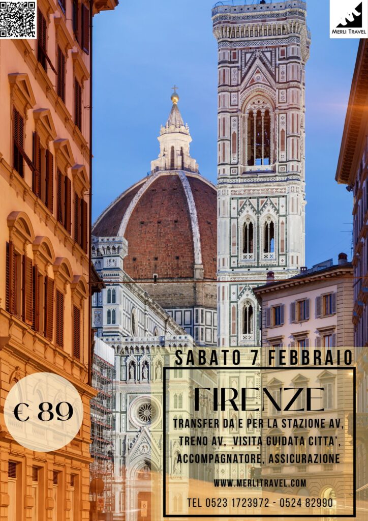 PRENOTAZIONI ENTRO IL 27 GENNAIO (salvo esaurimento dei posti anticipati) Firenze è una città che stupisce, seduce e rimane nel cuore. Il capoluogo toscano è un museo a cielo aperto ricco di capolavori architettonici e opere d’arte uniche al mondo. Ad ogni angolo...